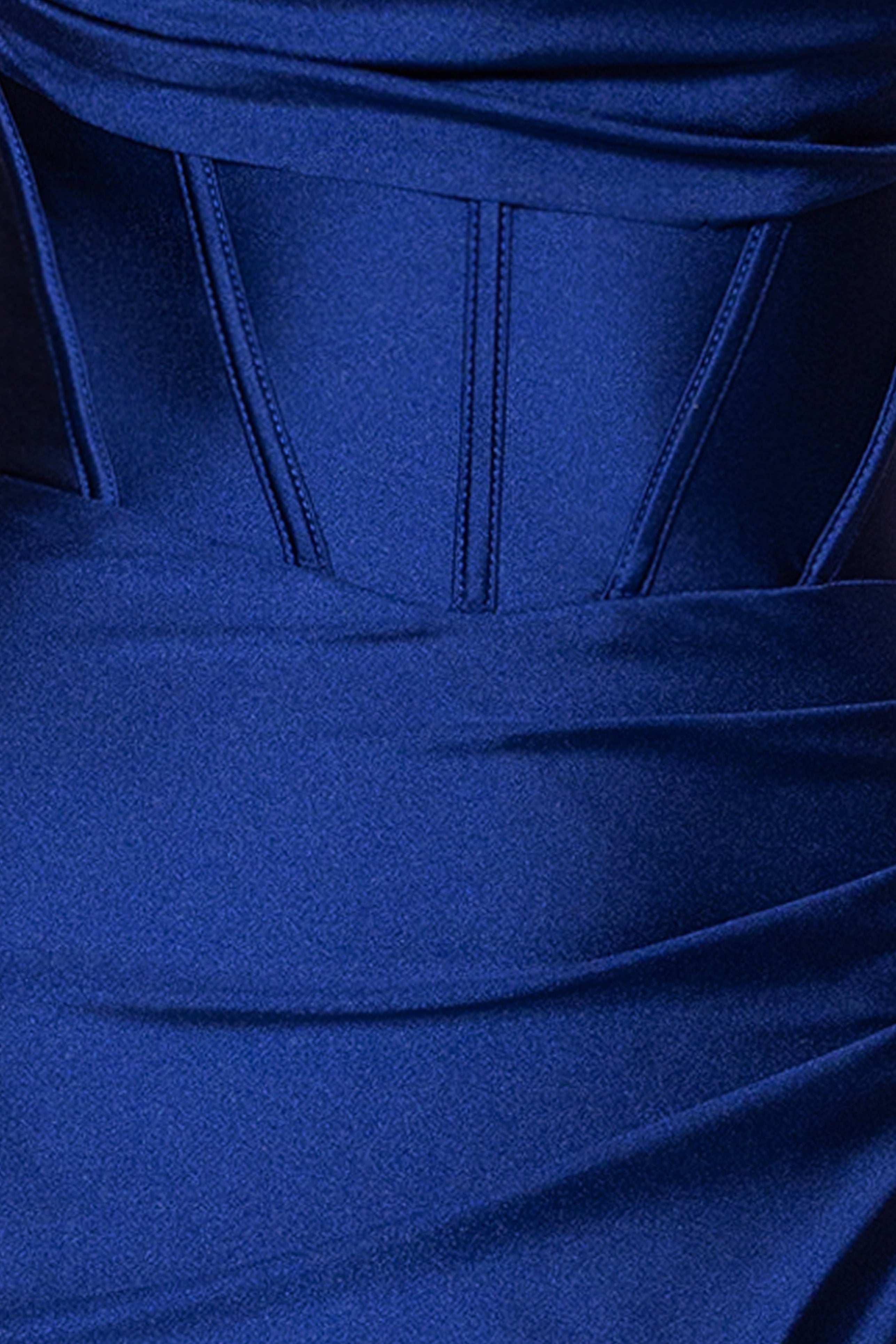 The "Talia" Long Sateen Corset Lace-Up Back Dress is a romantic gown with a structured corset bodice for an elegant silhouette. The lace-up back adds allure, while the luxurious sateen fabric with a subtle sheen exudes timeless glamour. Perfect for formal events or prom, "Talia" is a symbol of sophistication and refined beauty in its design.