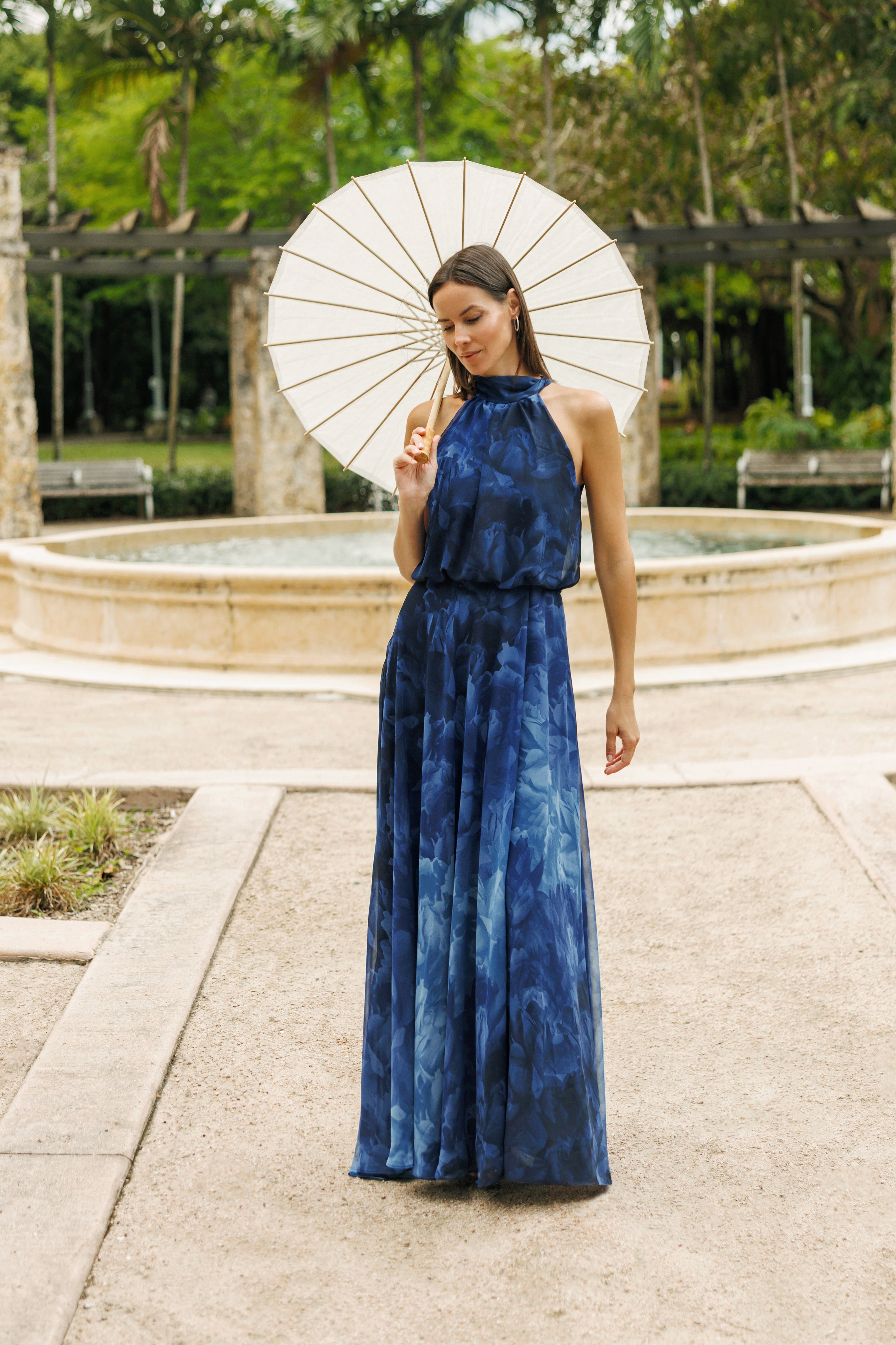 "Tami" Chiffon Print High Halter Neck Gown