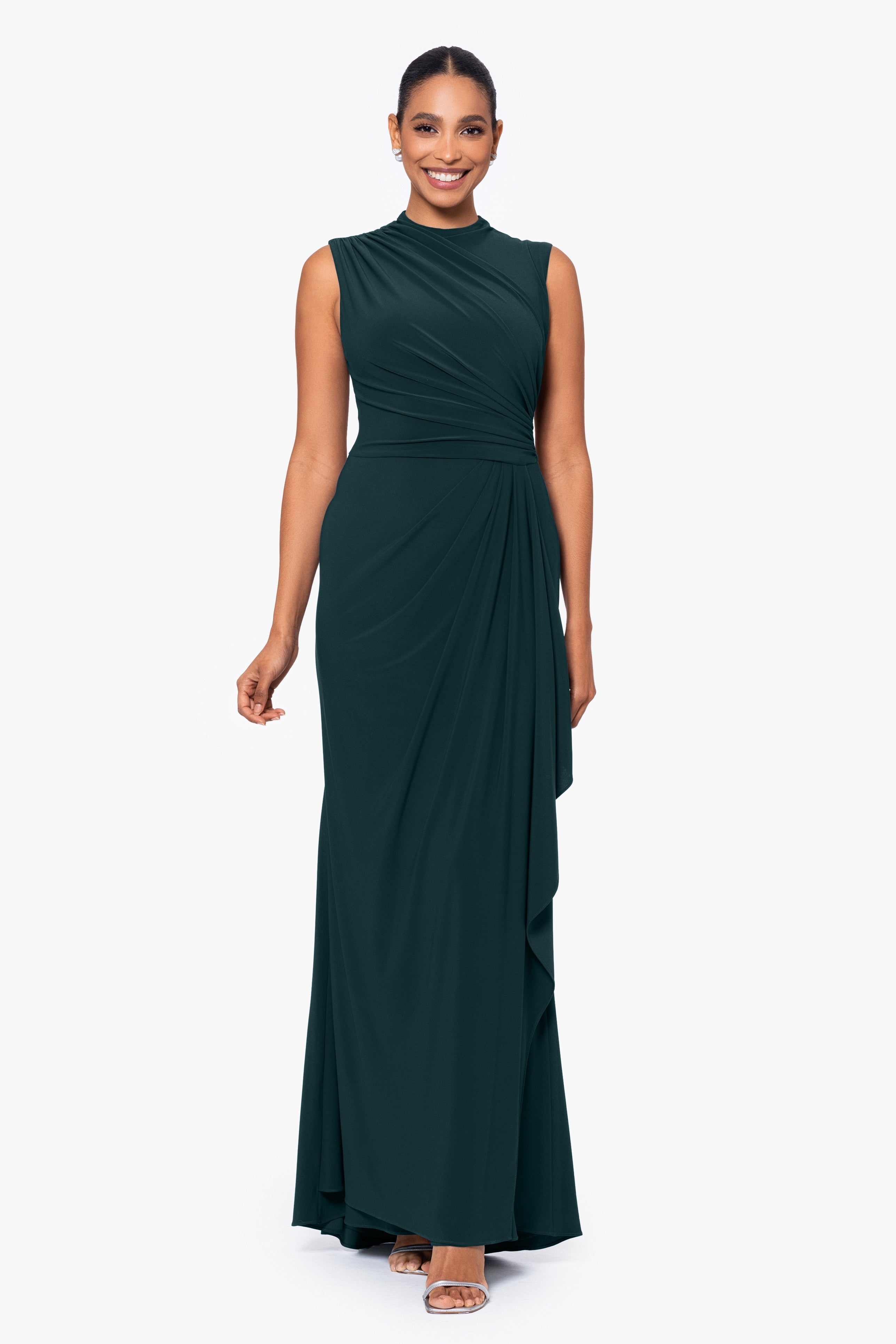 "Patricia" Long Jersey Knit Ruffle Sleeveless Dress