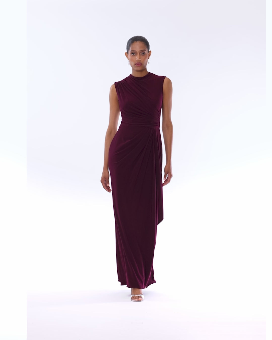 The "Patricia" Long Jersey Knit Ruffle Sleeveless Dress is a chic and versatile addition to any wardrobe. Crafted from soft jersey knit fabric, it offers both comfort and style with its elegant ruffle detailing along the sleeves. Perfect for both casual outings and special occasions, this dress effortlessly combines sophistication with a relaxed vibe.