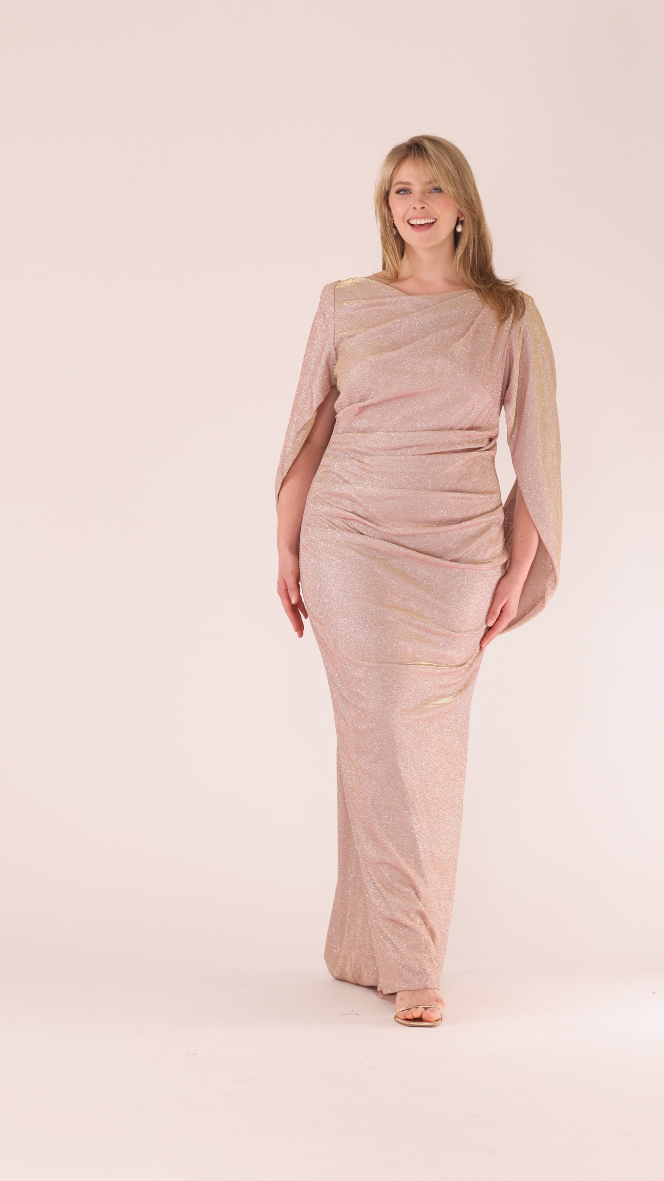 Plus "Gracie" Long Glitter Galaxy Cowl Neck Back Dress