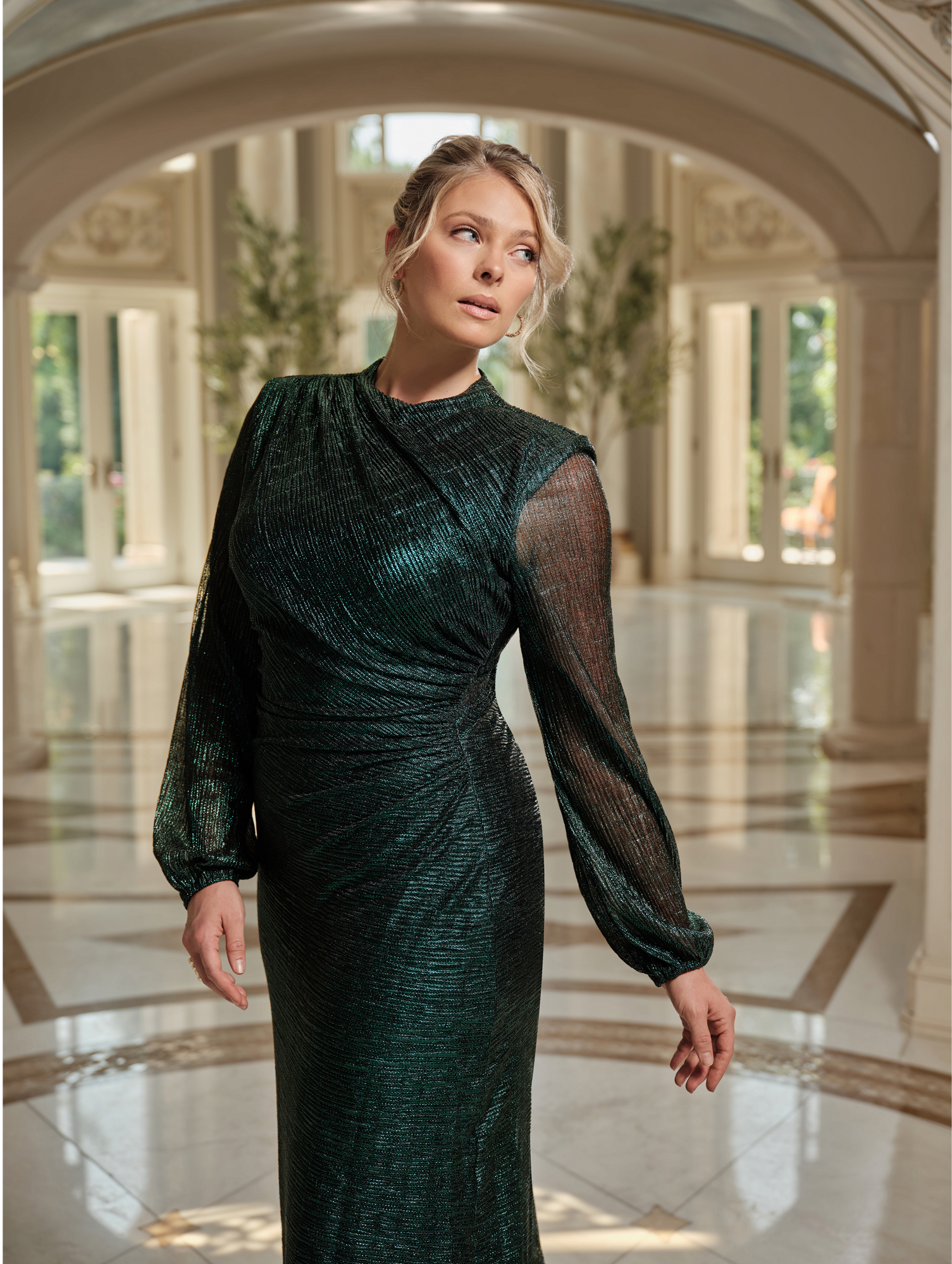 Plus "Annabelle" Metallic Foil and Long Mesh Sleeve Gown