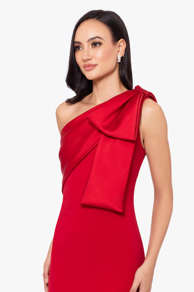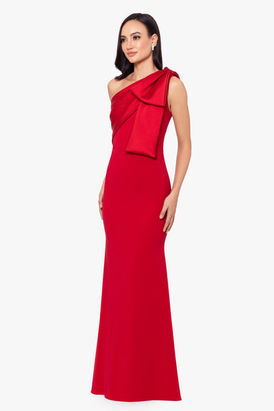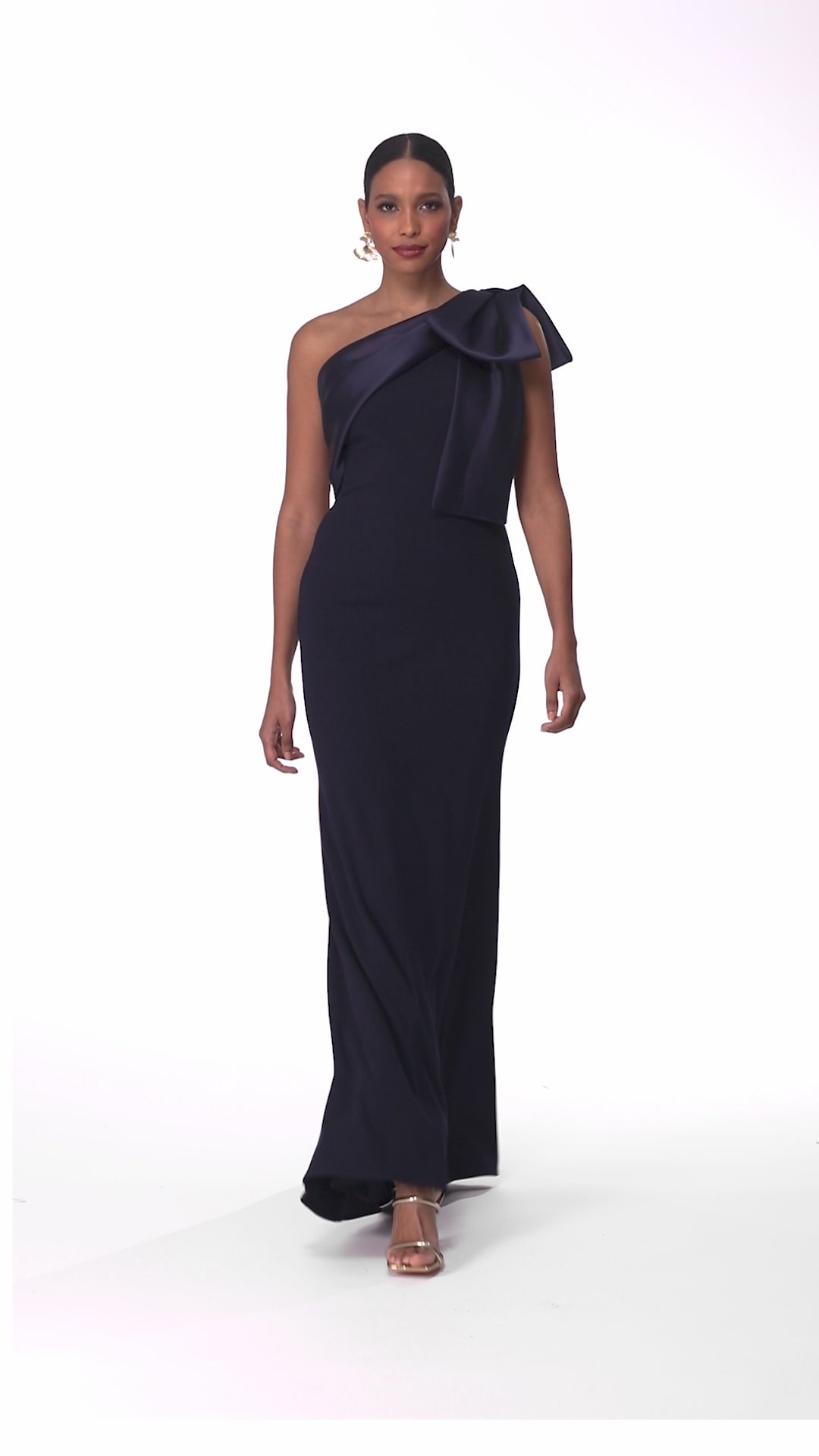 "Carmela" Long Scuba Crepe Dress with Satin Bow