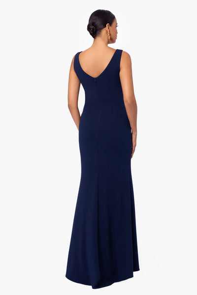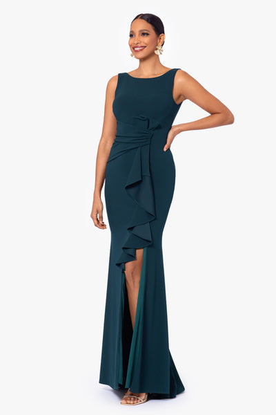 "Christine" Scuba Crepe Ruffled Bow Gown
