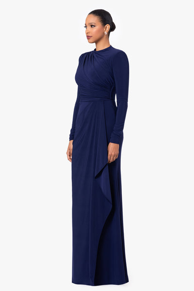 "Jeanette" Long Sleeve Stretch Knit Side Ruffle Dress