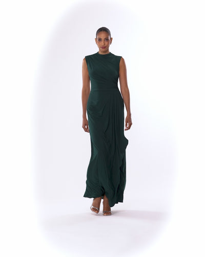 "Patricia" Long Jersey Knit Ruffle Sleeveless Dress