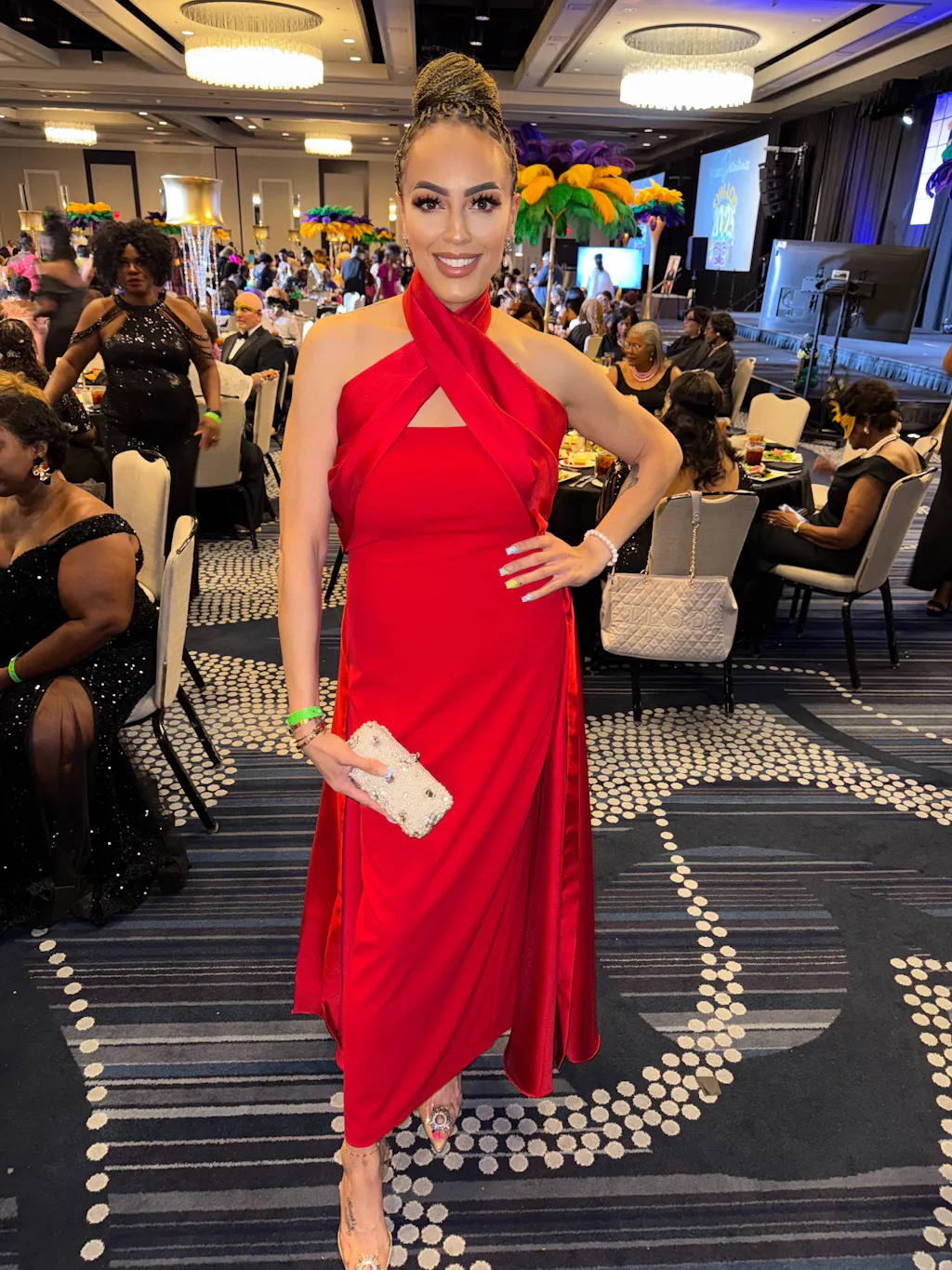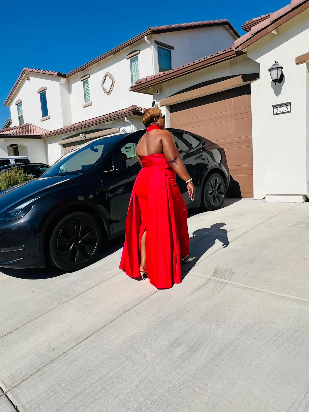 Turn up the drama in this halter-style gown, featuring a luxurious draped design and a sleek silhouette. Ideal for galas and formal evenings, this dress brings an effortlessly elegant flair to your standout moments.