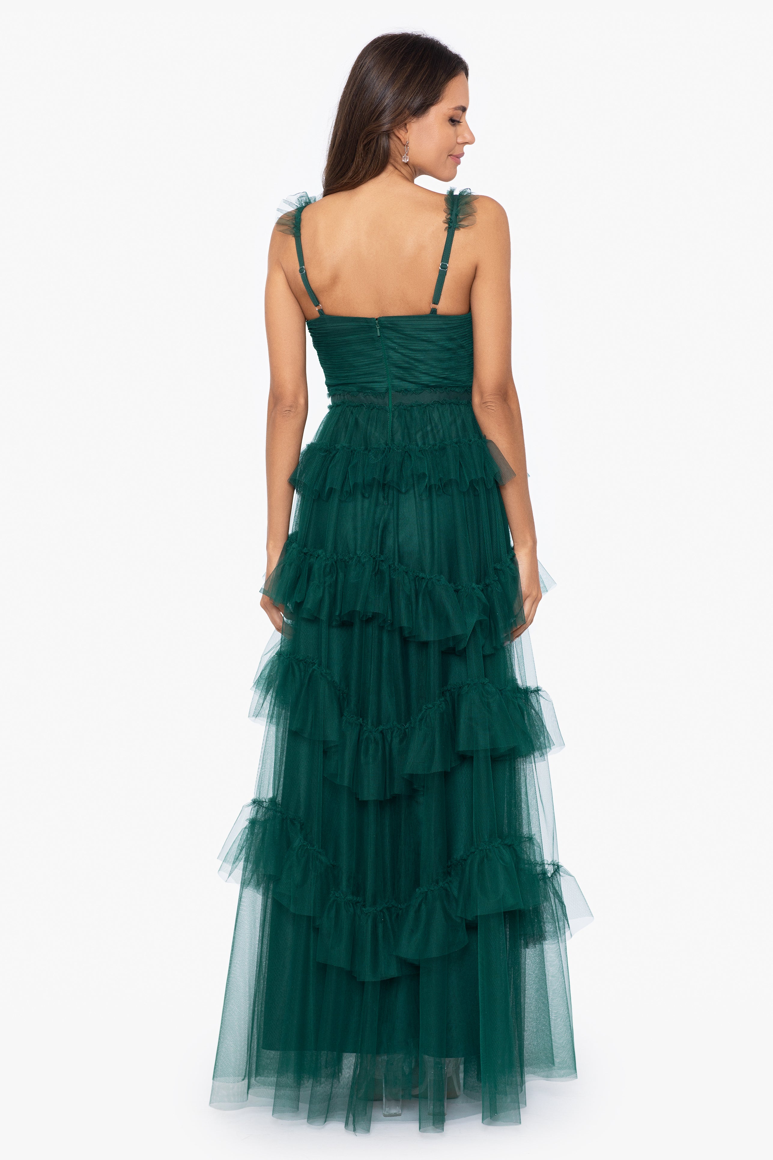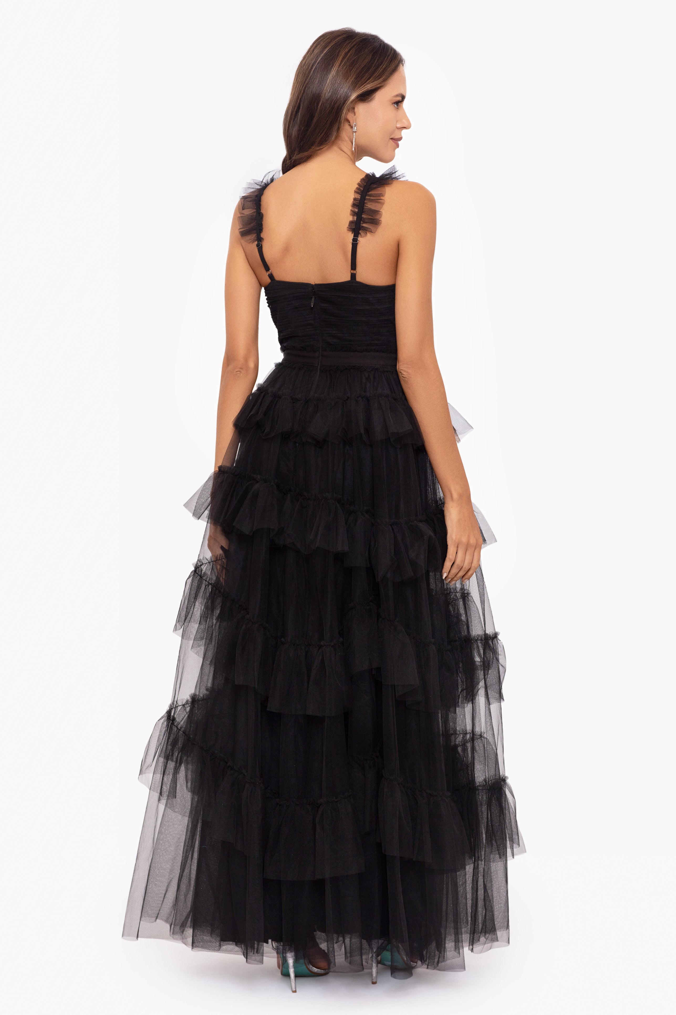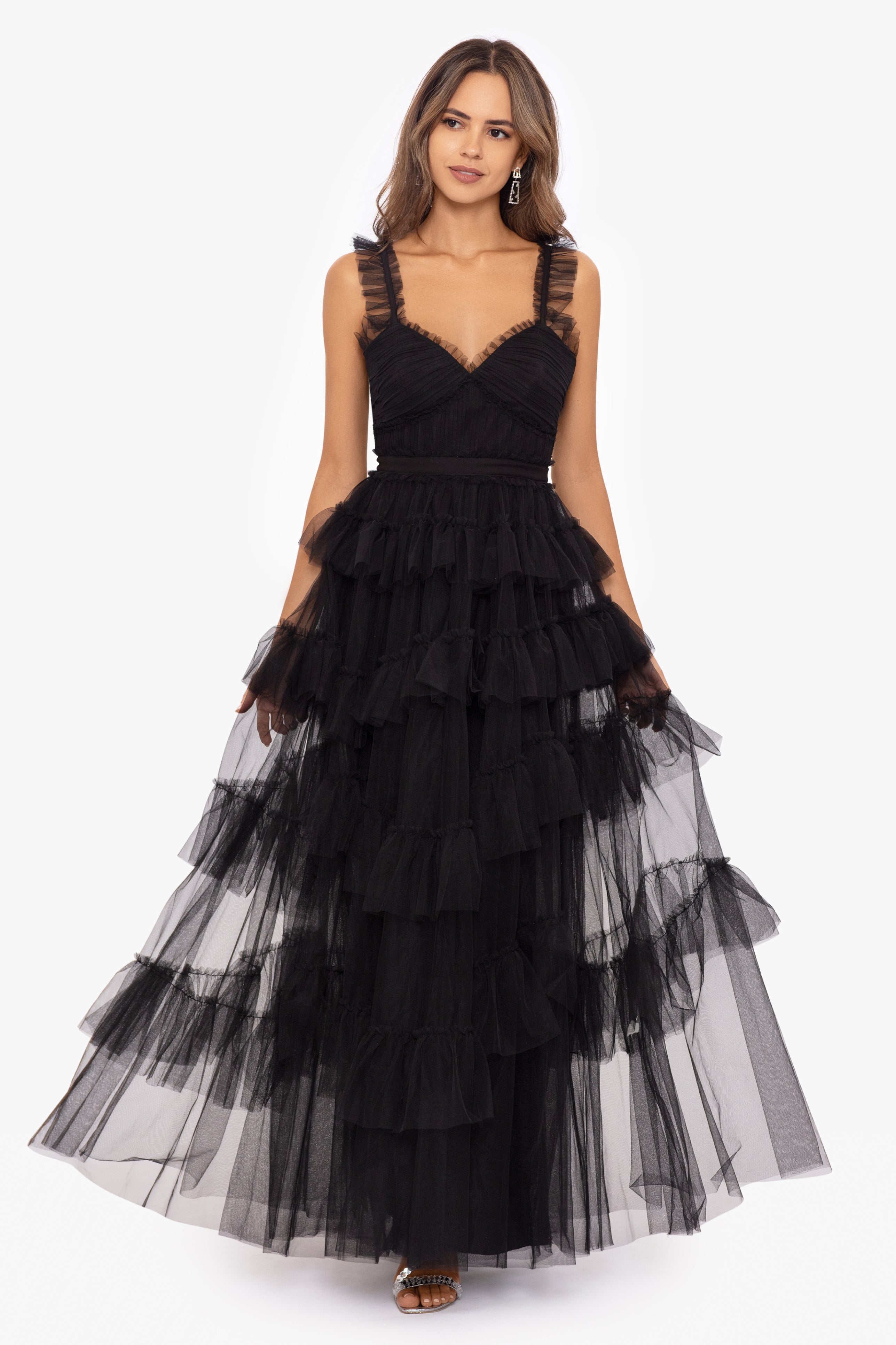 "Gigi" Long Ruffle Mesh Dress: The perfect blend of flirty and chic! Made of lightweight mesh with fully lined interior, this dress features a hidden zipper for a seamless look. The V-neckline and ruffle straps add a playful touch, while the satin belt accentuates your waist. Complete with a tiered ruffle skirt for added charm.