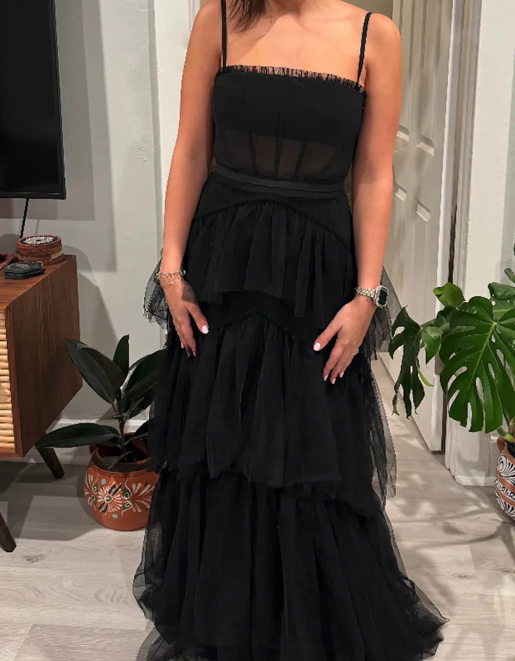 • Details: Structured Corset Bodice, Tiered Skirt
