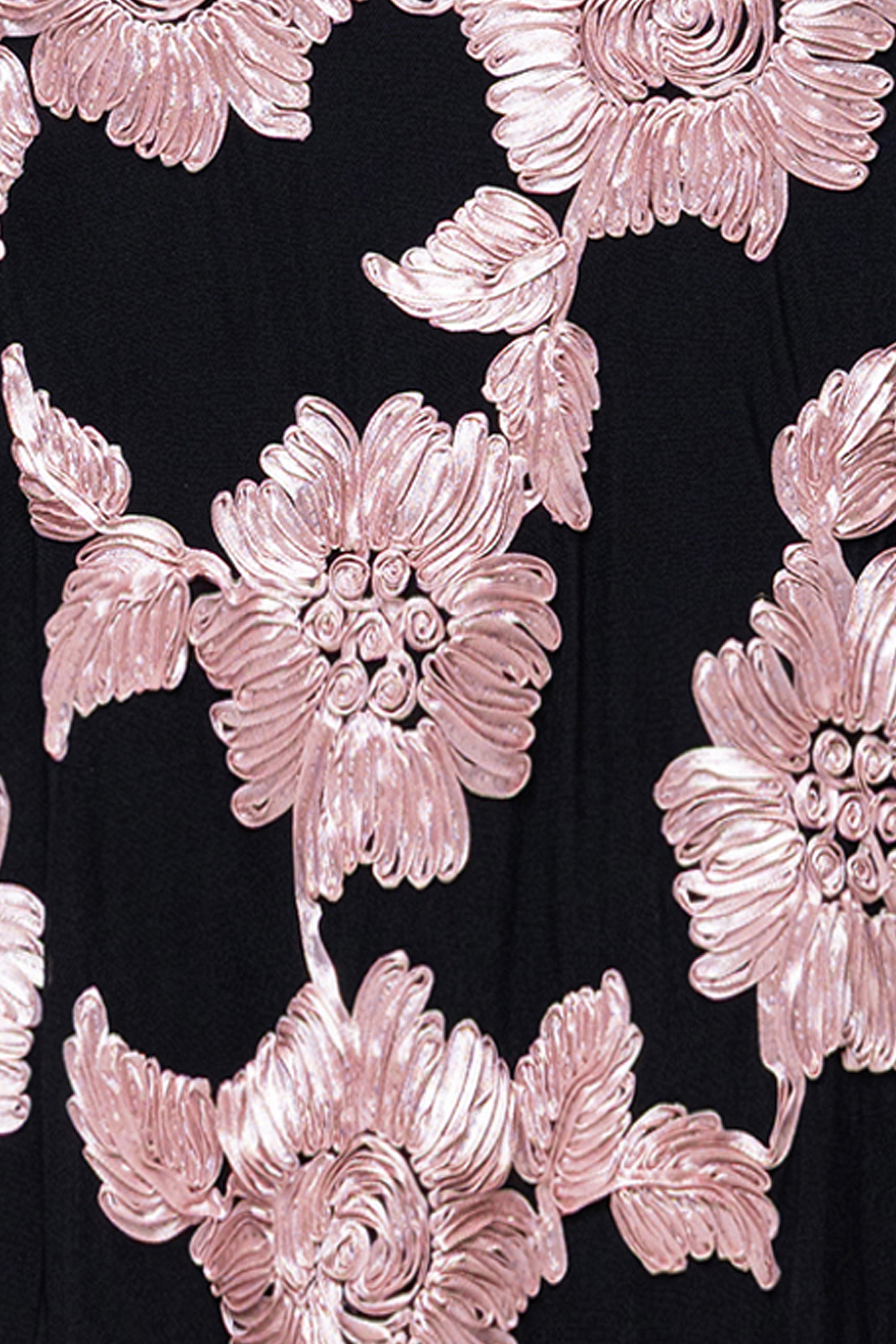 "Luciana" Soutache Mesh Waist Tie Long Sleeve Floor Length Dress