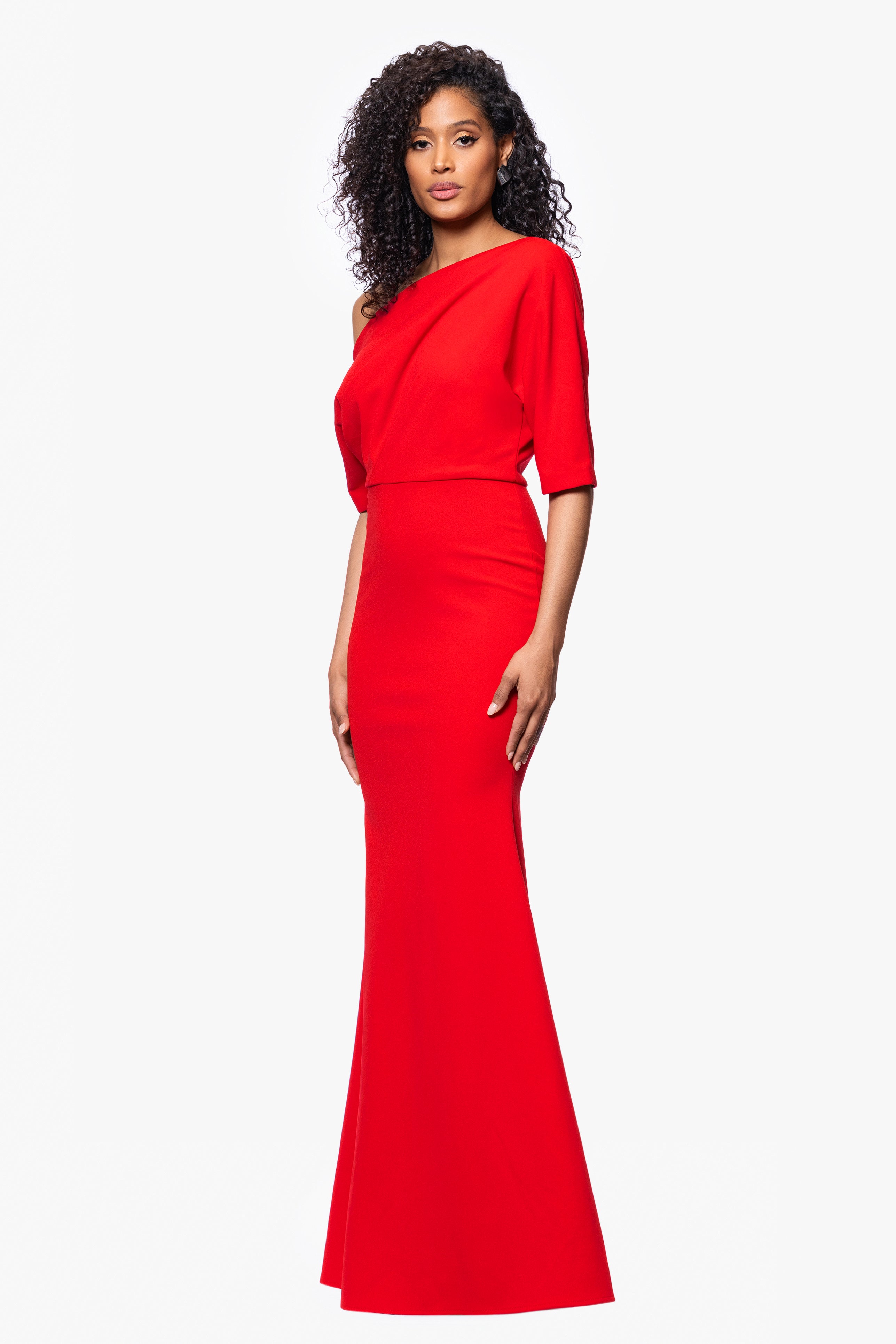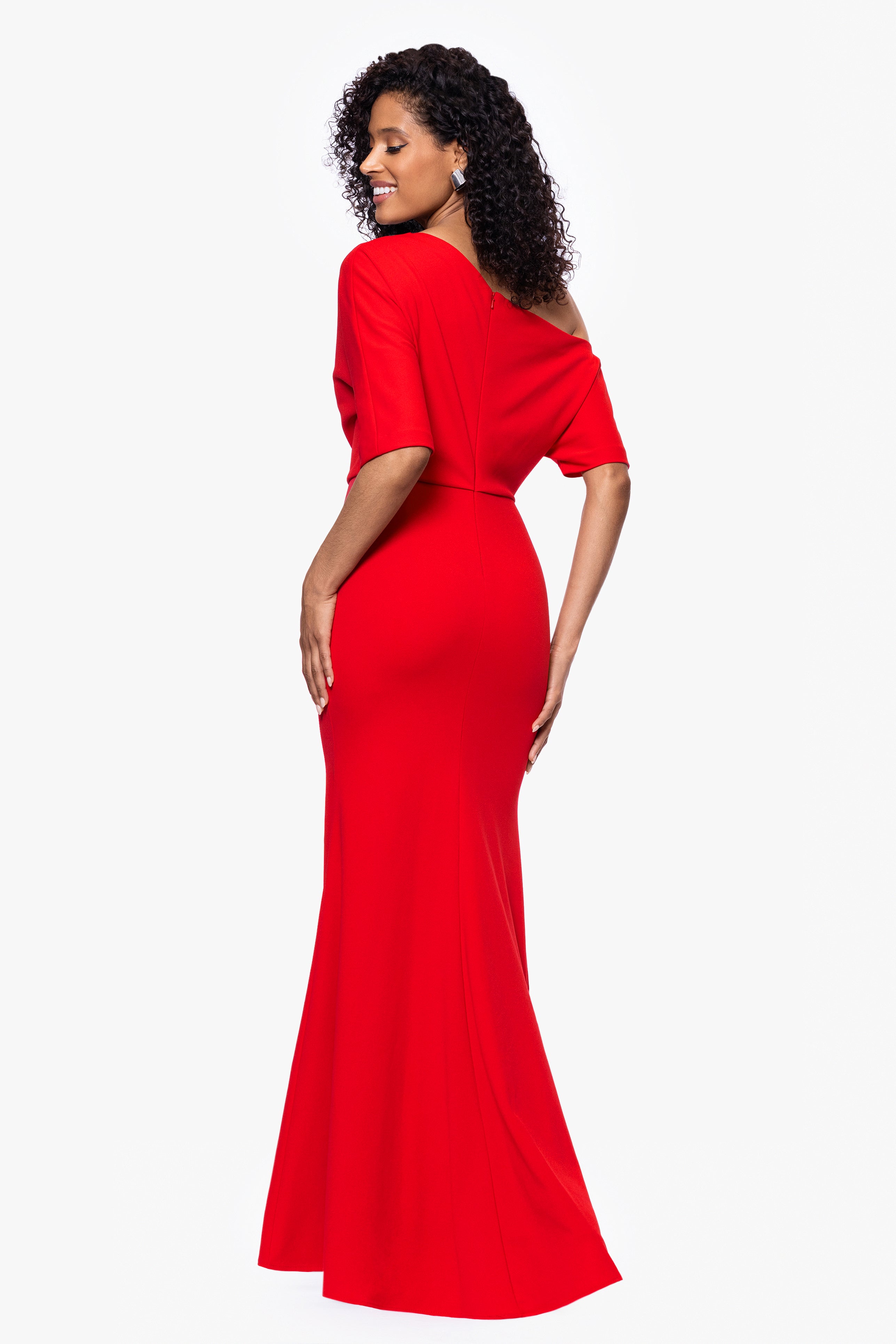 "Madeline" Long Scuba Crepe Off the Shoulder Drop Dress