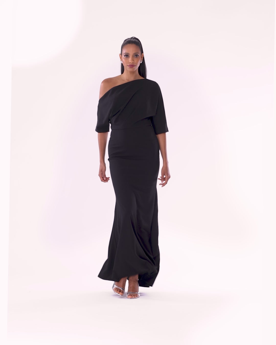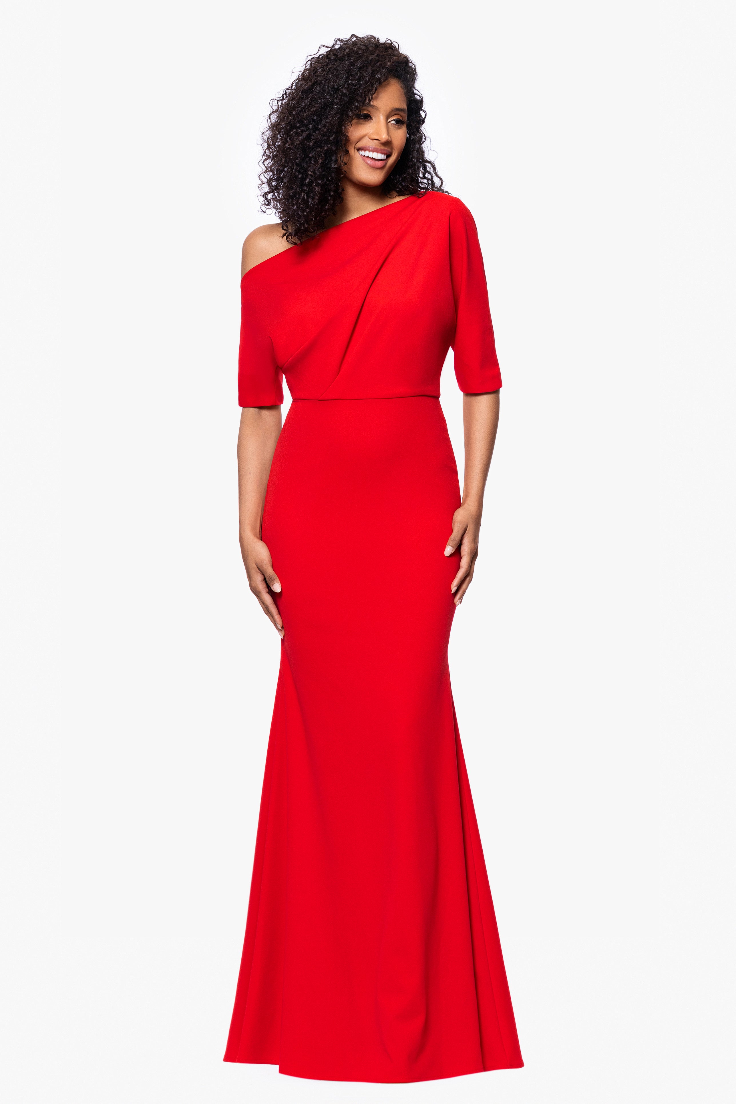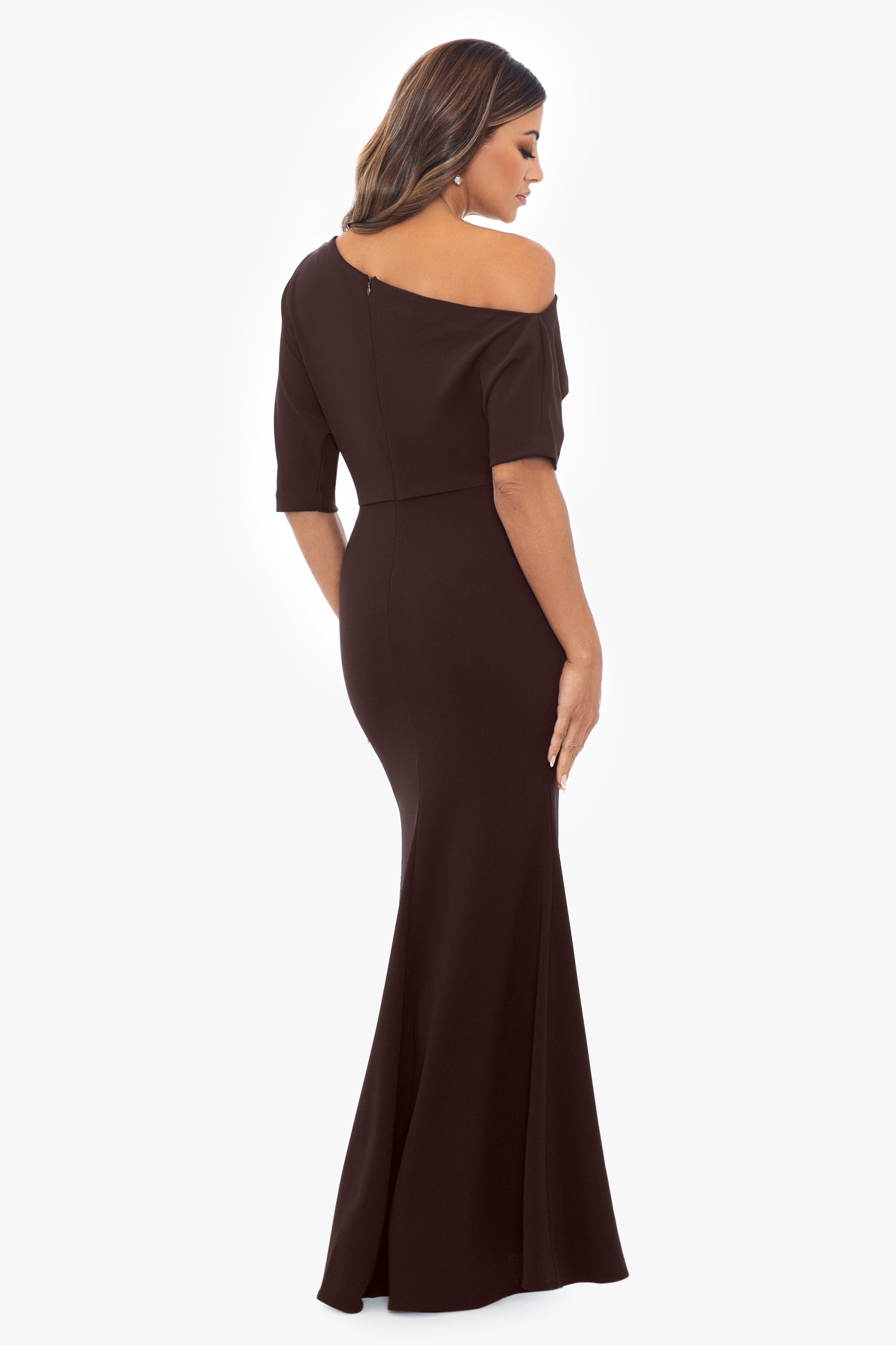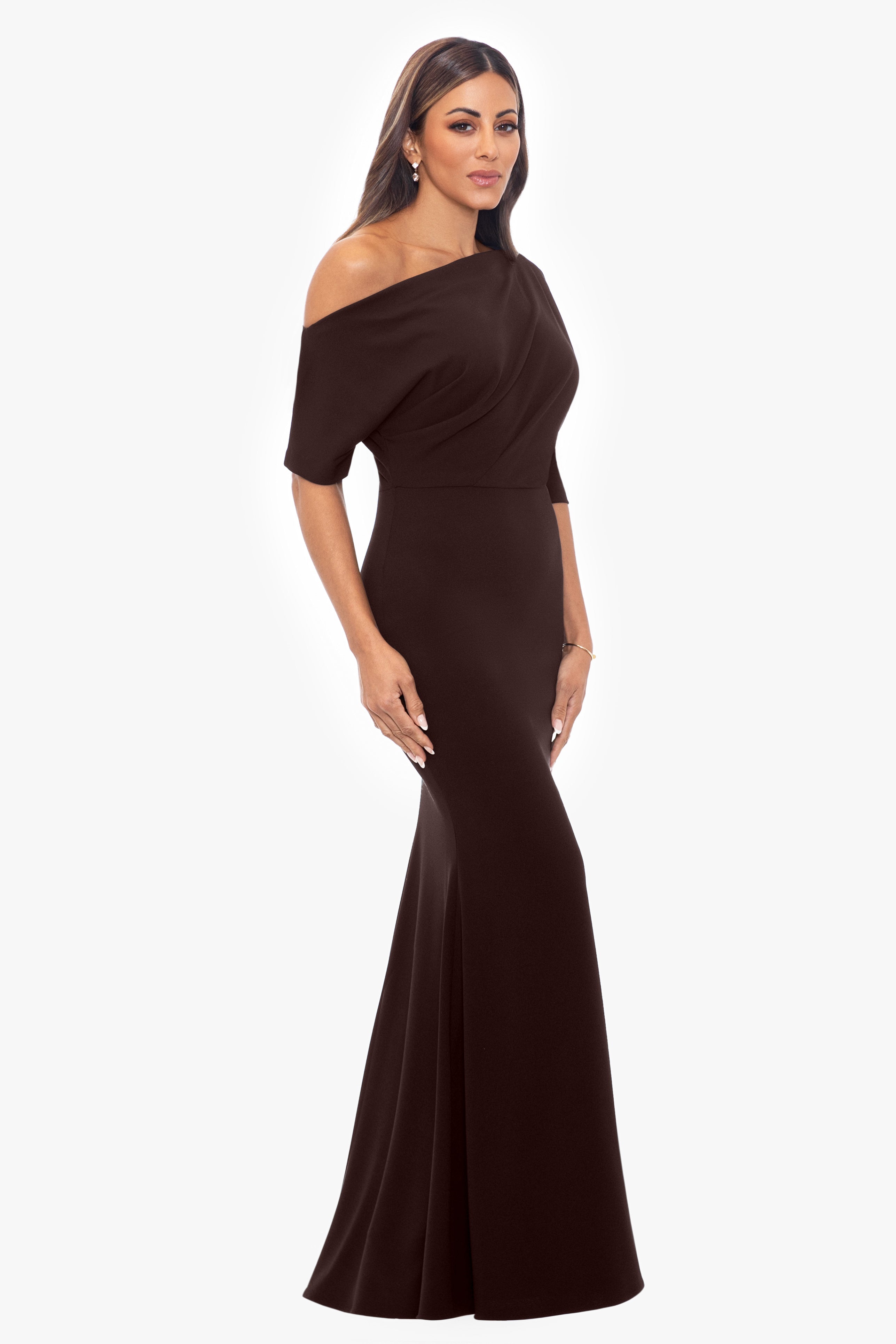 "Madeline" Long Scuba Crepe Off the Shoulder Drop Dress