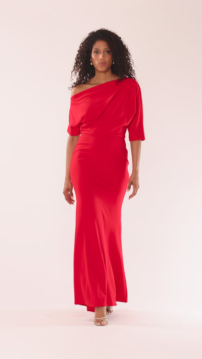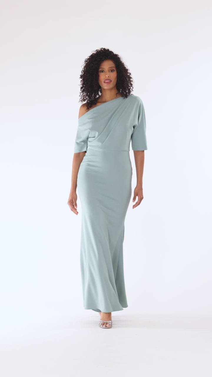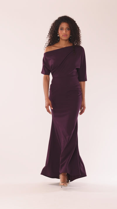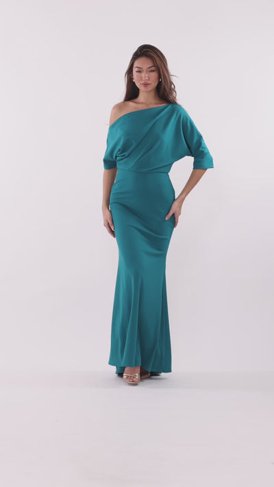 "Madeline" Long Scuba Crepe Off the Shoulder Drop Dress