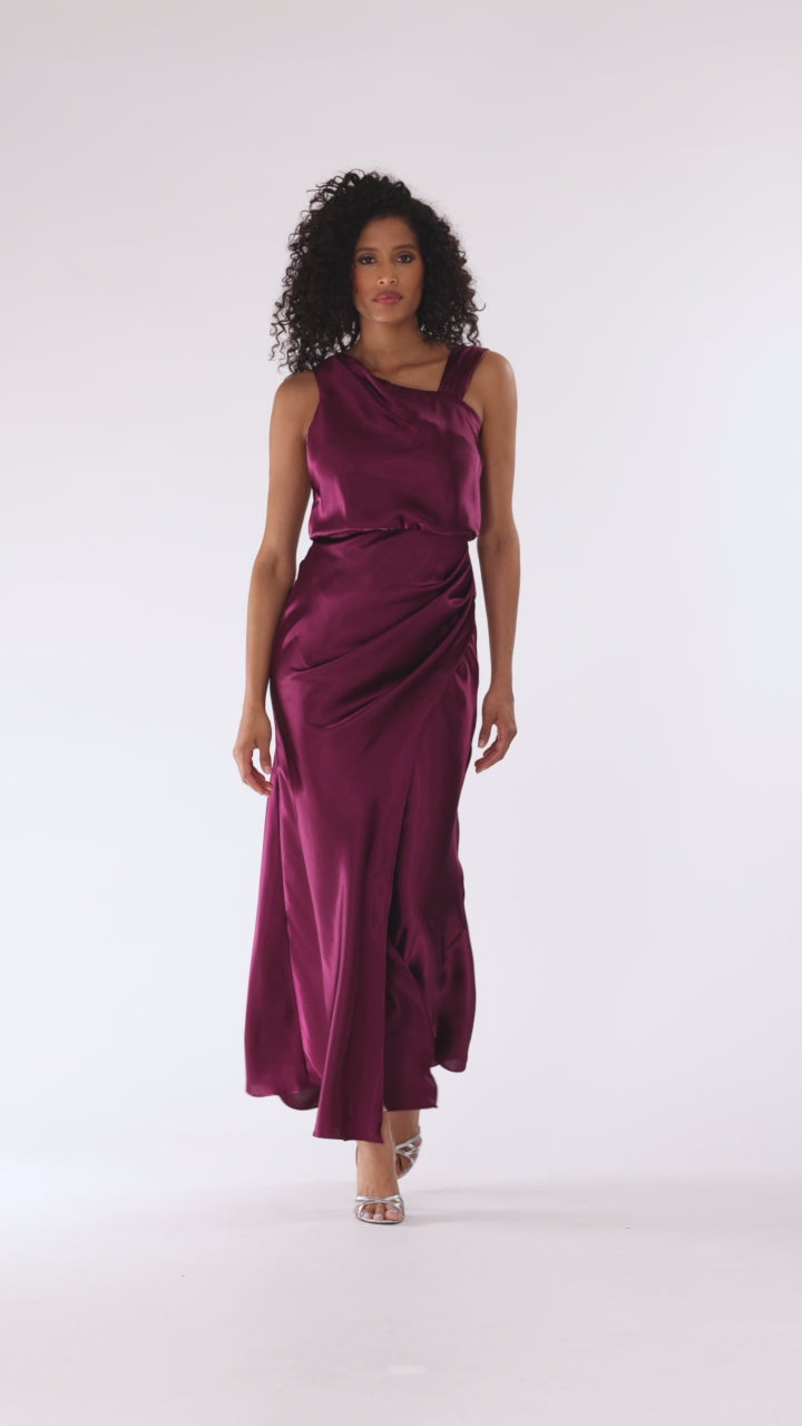"Melody" Satin Rouched Strap Floor Length Dress