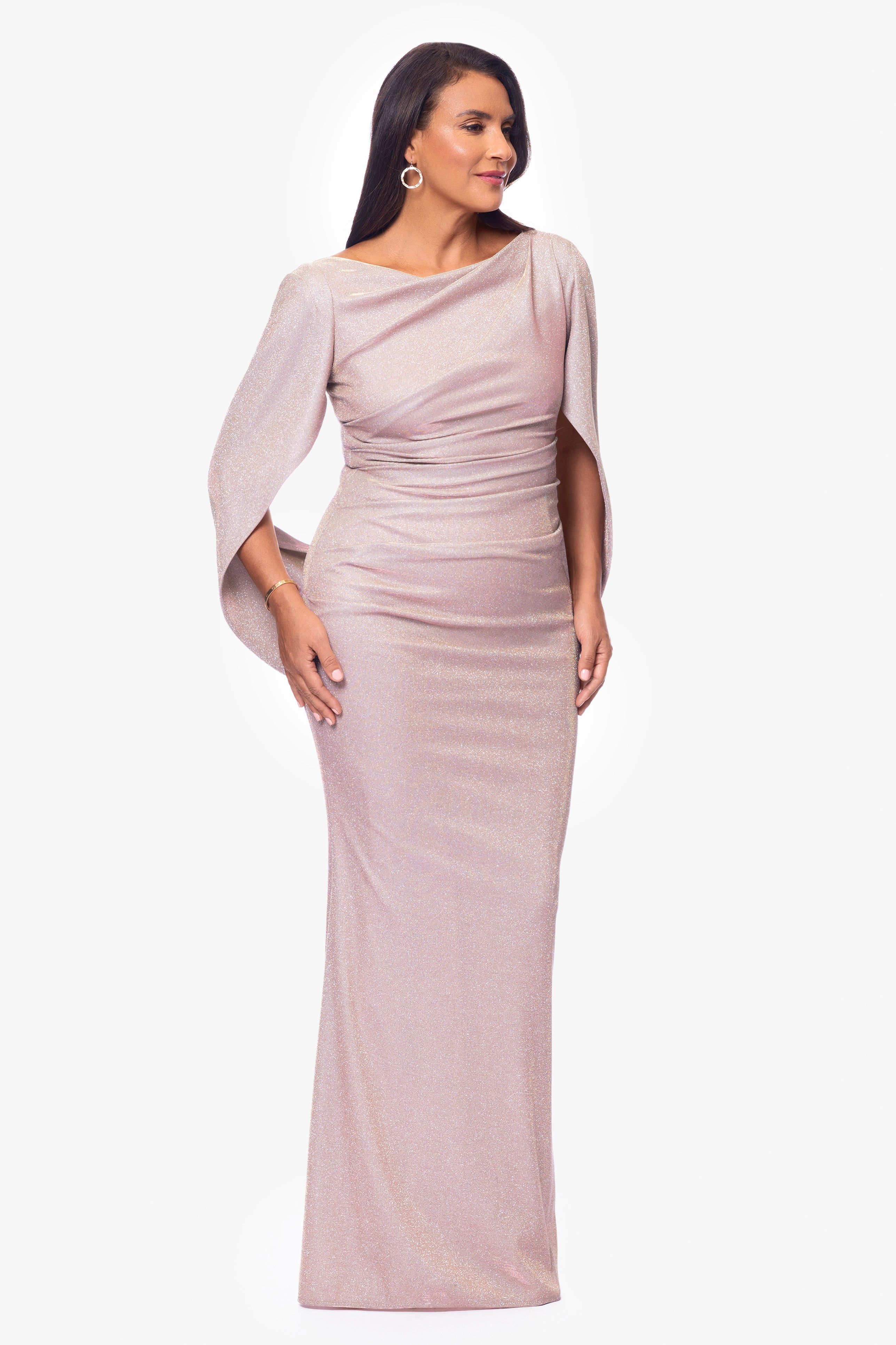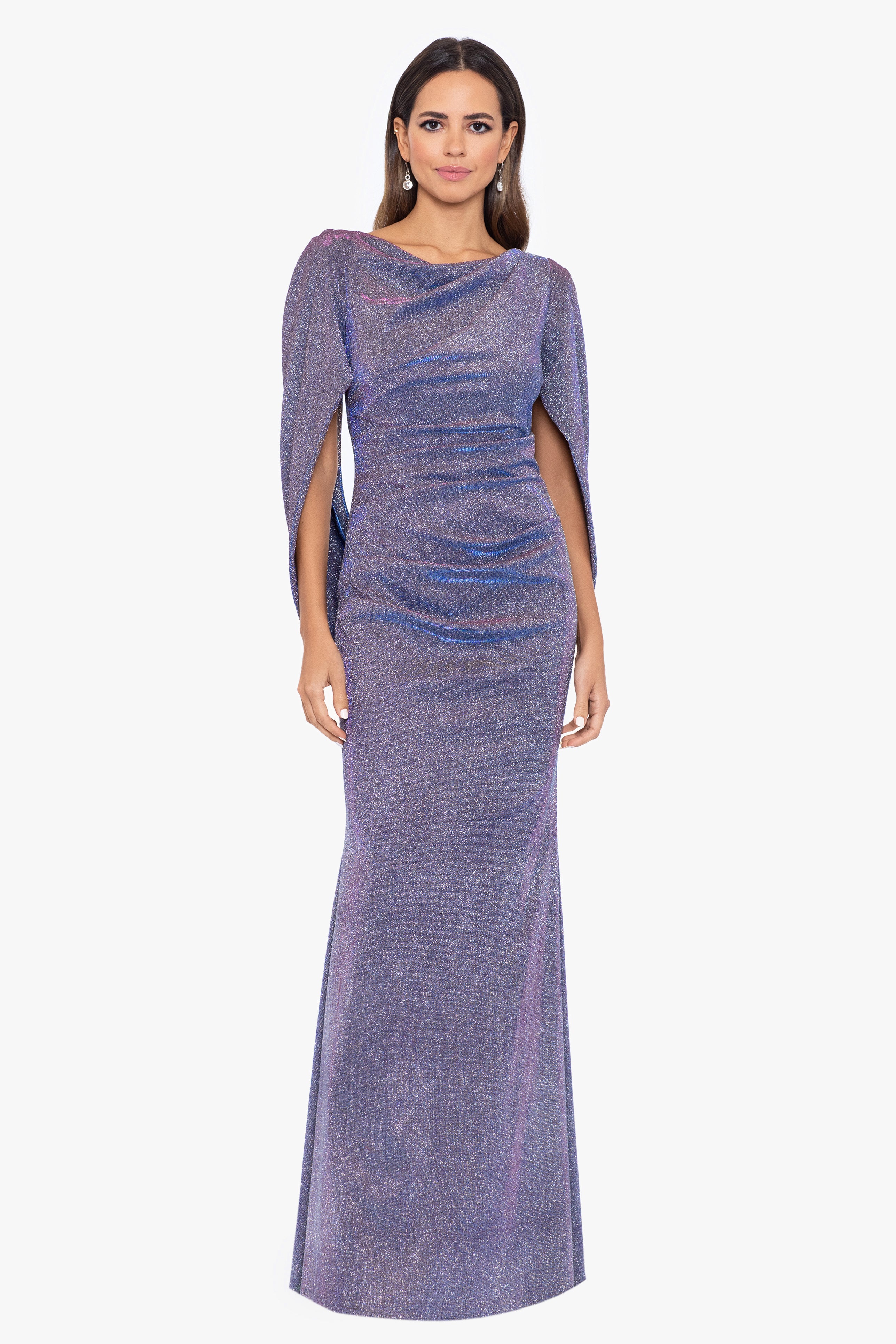 Petite "Gracie" Galaxy Knit Glitter Draped Gown