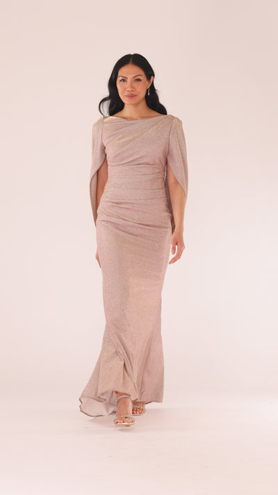 Petite "Gracie" Galaxy Knit Glitter Draped Gown