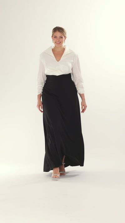 Elegant A-line silhouette crafted from luxurious taffeta and scuba crepe, designed to flatter and enhance your natural curves. This floor-length dress features a refined construction that transitions beautifully from day to evening occasions, offering timeless sophistication and graceful movement.
