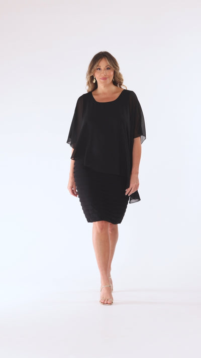 Plus "Charlotte" Short Chiffon Cape Scuba Crepe Shutter Dress