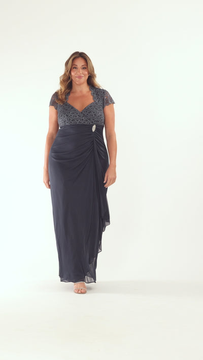 Plus "Kim" Sheer Matte Jersey Lace Cap Sleeve Dress