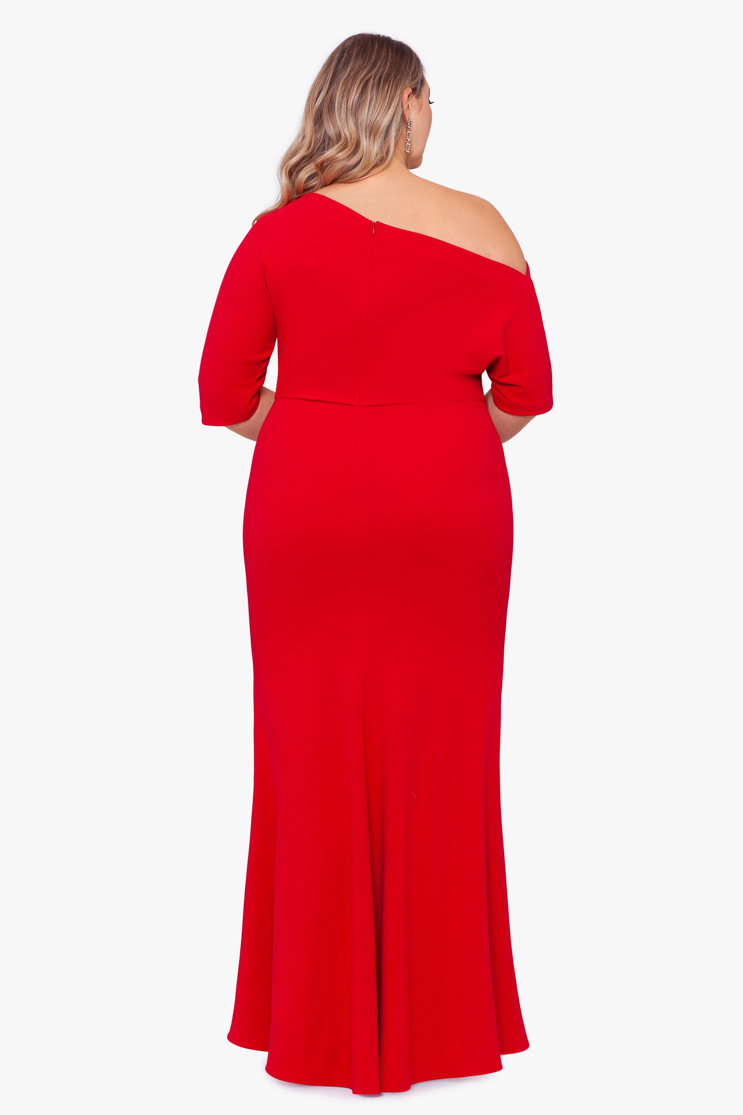 Plus "Madeline" Long Scuba Crepe Off the Shoulder Drop Dress
