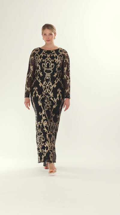 Plus "Nara" Long Sleeve Sequin Placement Gown