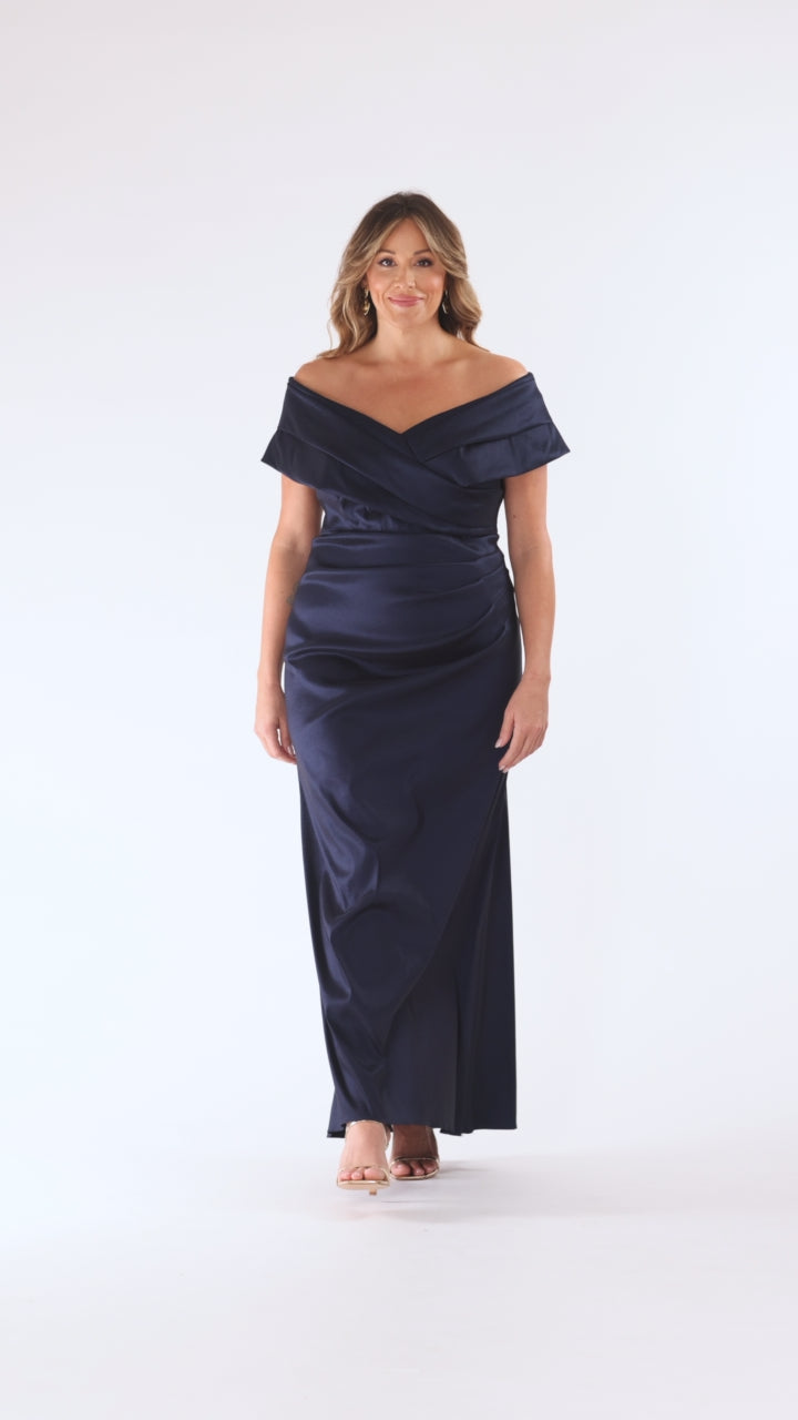 Plus "Raquel" Taffeta Off the Shoulder Floor Length Dress