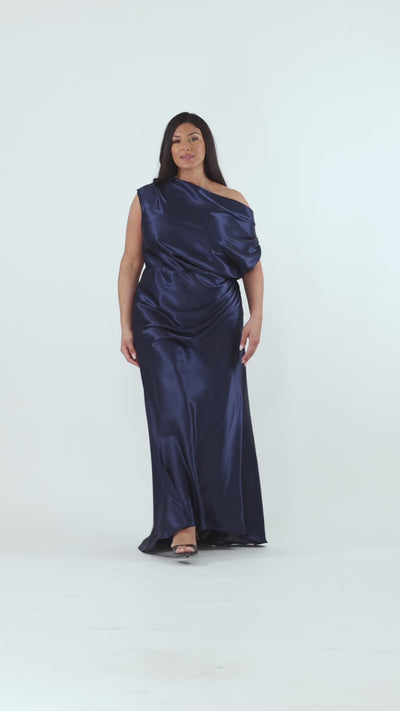 Timeless elegance meets modern sophistication in this floor-length gown. Featuring a gracefully draped drop shoulder and sumptuous satin fabric, this piece exudes refined glamour. Ideal for galas, weddings, and memorable celebrations where understated luxury makes a lasting impression.