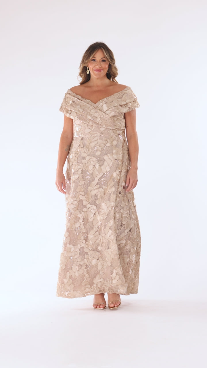 Plus "Teyana" Soutache Sequin Off the Shoulder Floor Length Dress