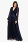 • Details: Floor Length Gown, Waist Wrap, Long Sleeve Dress