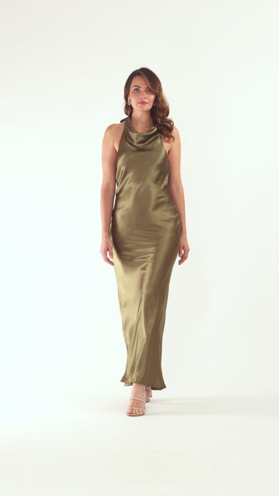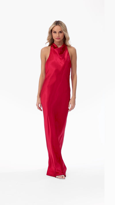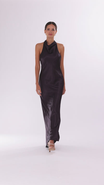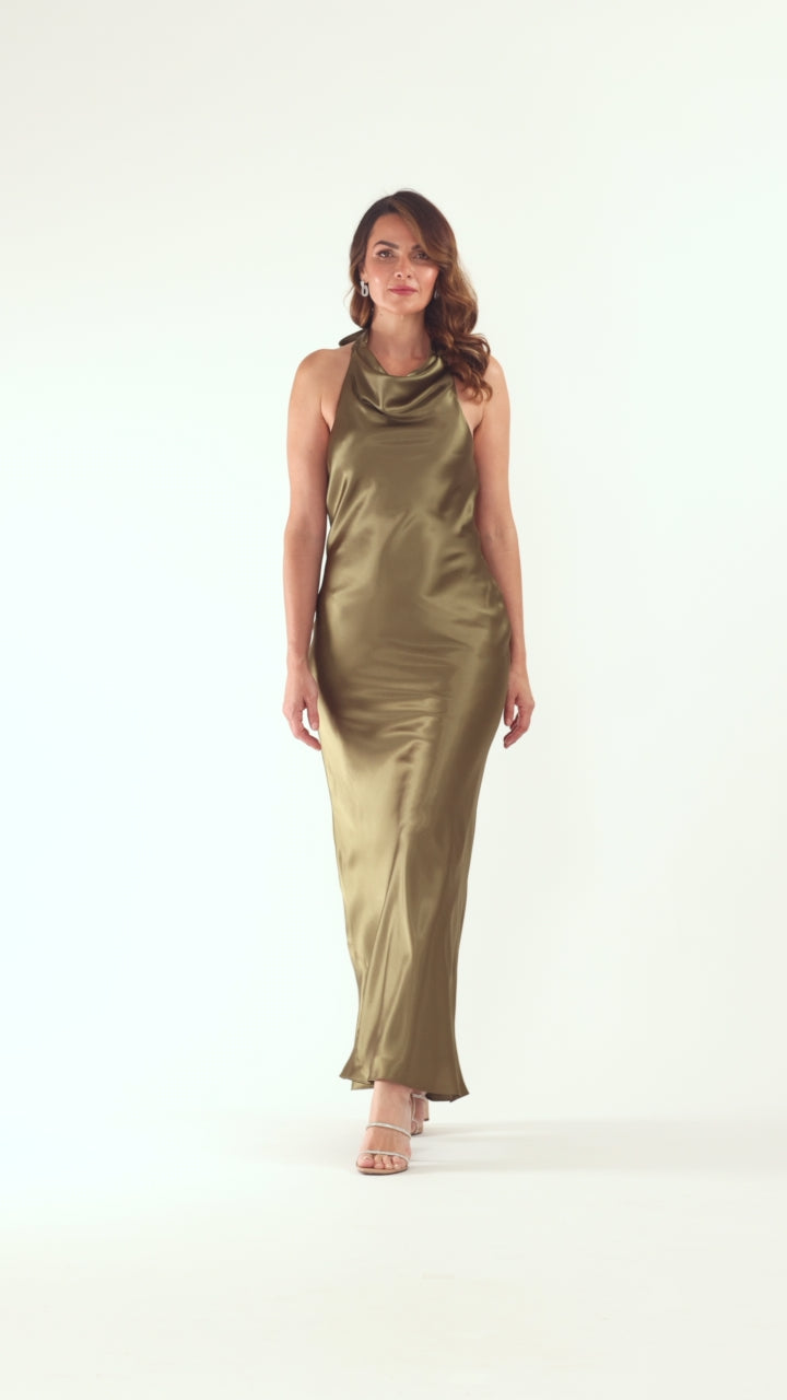 The "Shannon" dress exudes timeless glamour with its halter necktie and floor-length silhouette. The halter neckline creates a chic and flattering look, while the necktie adds a touch of refinement. This dress is a perfect choice for those seeking a sophisticated and graceful outfit for special events and formal occasions.