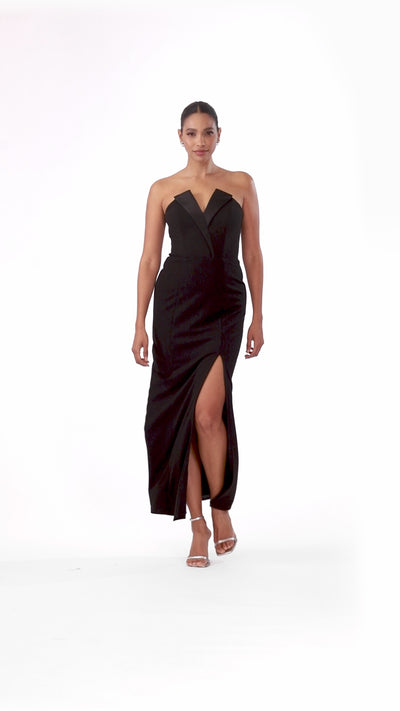"Violette" Long Strapless V Neck Tuxedo Dress